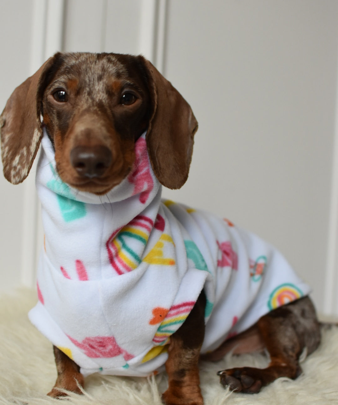 Wrap up warm in our super soft and chic sweaters in a range of colours. Soft Cotten sweatshirt outer with furry soft inside it will keep your pooch warm and cosy in the cooler months!