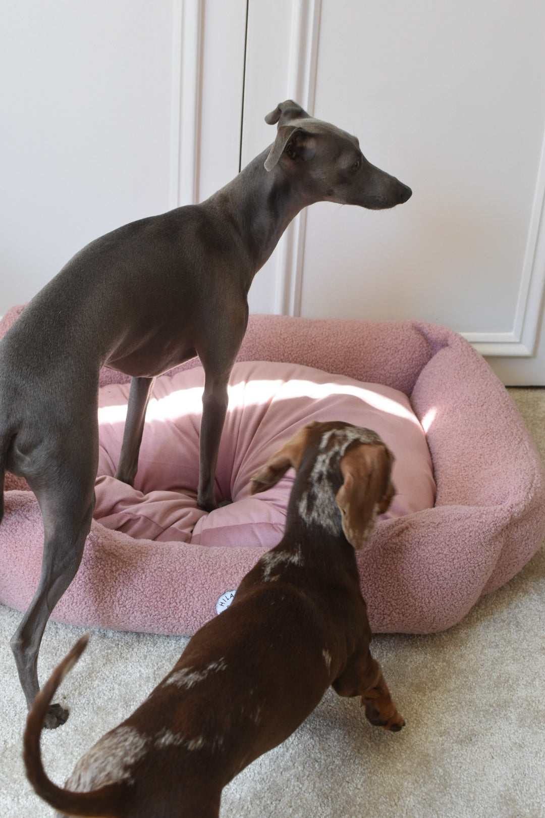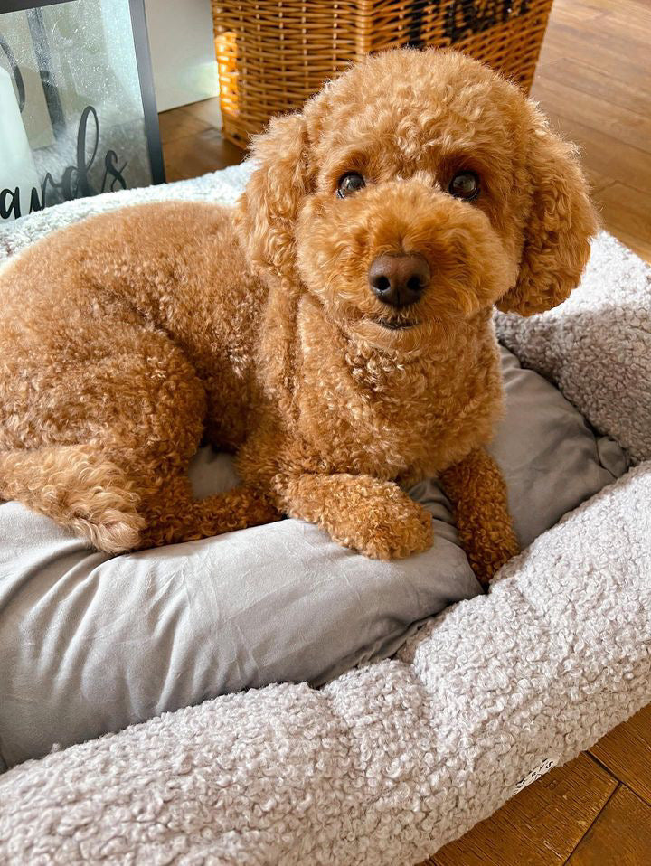 Our Bolster is Sherpa Fleece outer with Hypoallergenic soft fibre filled stuffing which allows for the perfect headrest for your pet!
